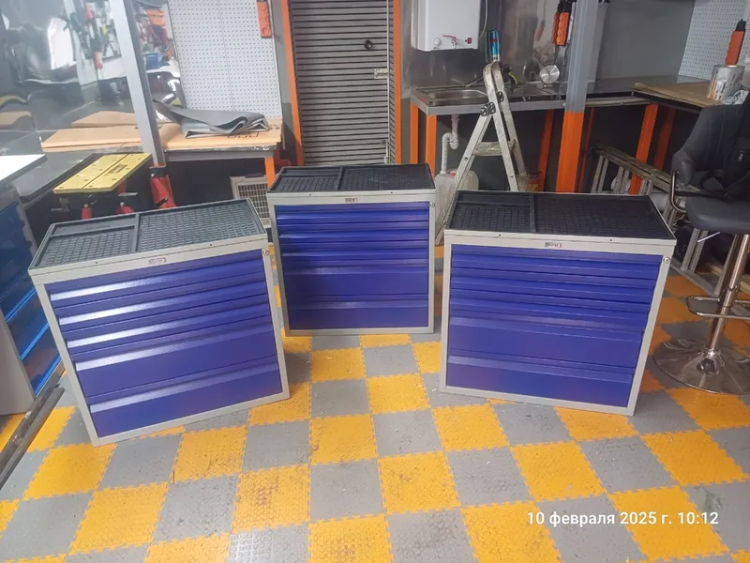 - Пять выдвижных ящиков на телескопических направляющих: 2 больших и 3 малых, что позволяет удобно сортировать инструмент и расходные материалы.